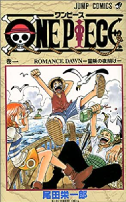 かつてこの世の全てを手に入れた男、〝海賊王〟ゴールド・ロジャー。彼が遺した「ひとつなぎの大秘宝(ワンピース)」をめぐり、幾多の海賊達が覇権を賭けて争う「大海賊時代」が到来した。「東の海(イーストブルー)」に住む少年モンキー・D・ルフィは、村に滞在していた海賊〝赤髪のシャンクス〟と親しくなり、海賊への憧れを募らせる。ある日ルフィは「ゴムゴムの実」という悪魔の実を食べ、一生泳げない体になる代わりに、全身が伸び縮みするゴム人間となった。それからしばらくして、ルフィはシャンクスを貶める山賊たちから怒りを買い、海に投げ込まれてしまう。溺れかけ、巨大魚に食われそうになったルフィを、シャンクスは片腕を犠牲にして助け出した。ルフィは、村を去る間際のシャンクスからトレードマークの麦わら帽子を託され、将来立派な海賊になって再会することを約束する。海賊王を目指すモンキー・D・ルフィが「ひとつなぎの大秘宝(ワンピース)」を巡って駆け抜ける。夢への冒険・仲間たちとの友情といったテーマを前面に掲げ、バトルやギャグシーン、感動エピソードをメインとする少年漫画の王道を行く物語として少年ジャンプの看板マンガとなっている。